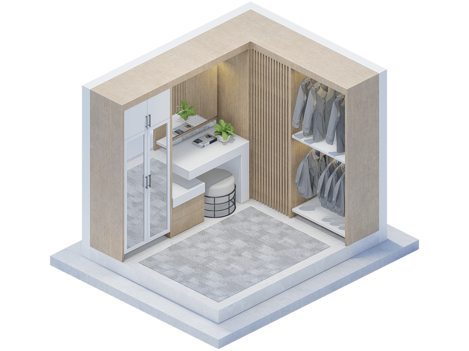 There is a current trend in closet design of creating storage solutions that make the most efficient use of space. This means that closets are being designed to maximize storage capacity while still remaining within the confines of the overall space available. This space has a contemporary look with a color palette that brings out the best in your home's existing interior spaces. The walls and ceiling are light-colored, and the flooring is high-gloss and polished. This chic and stylish closet is designed to make the most of your space, whether you have a small apartment or condo. We can make your closet dreams come true at Contemporary Closets with its rows and rows of shelving, plus a few fold-down racks, providing ample room for clothing of all types. Here you will find stylish clothing and accessories neatly displayed. Sleek and chic furniture completes the look.