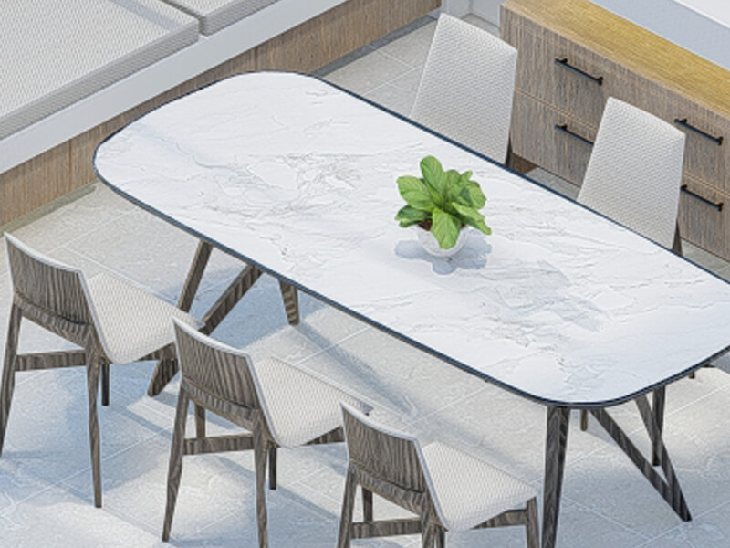 The dining room has a sleek, contemporary look with uncluttered spaces and a few accents and decorations. The colors are neutral, and the dining areas have white or pastel walls. The dining room furniture consists of light fixtures, simple lines, and upholstered chairs, with wooden or metal tables. This design style is all about clean lines, natural colors and elements, geometric patterns and designs, and continuous surfaces. The focus is on things like elegance, sophistication, and minimalism.