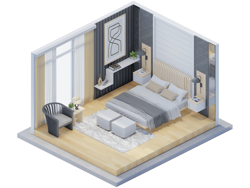 Crafted with precision and attention to detail, the laminate panels feature intricate patterns and a smooth finish that mimic the look of hardwood. They provide the durability and easy maintenance of laminate, making them a practical choice for busy bedrooms.