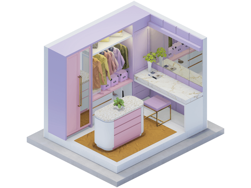 There is a current trend in closet design of creating storage solutions that make the most efficient use of space. This means that closets are being designed to maximize storage capacity while still remaining within the confines of the overall space available. This space has a contemporary look with a color palette that brings out the best in your home's existing interior spaces. The walls and ceiling are light-colored, and the flooring is high-gloss and polished. This chic and stylish closet is designed to make the most of your space, whether you have a small apartment or condo. We can make your closet dreams come true at Contemporary Closets with its rows and rows of shelving, plus a few fold-down racks, providing ample room for clothing of all types. Here you will find stylish clothing and accessories neatly displayed. Sleek and chic furniture completes the look.