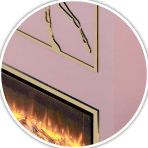 Looking for a sleek and contemporary fireplace design? Tiny Rooms is the perfect place to start your search. Fireplaces are available in a variety of shades to match your wood furnishings and create a stunning monochromatic effect. The black fireplace surround is sleek and adorned with a geometric pattern. The bookshelf next to it has similar designs, but with vertical and horizontal lines to accent the stylishness of the fireplace. The small decorative mirror on the mantelpiece reflects light upwards, adding to the cozy ambiance and creating a warm atmosphere. The light reflecting off of the mirror brightens up the room and makes it feel more welcoming.