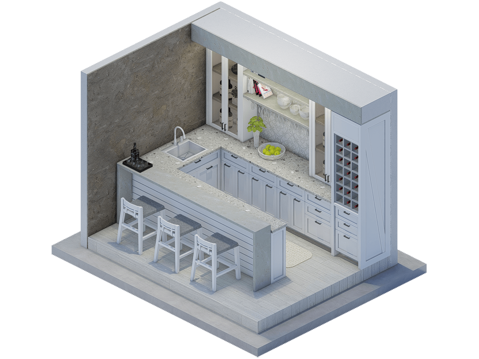 - Layers of sophistication and texture were added to create a clean and inviting space.