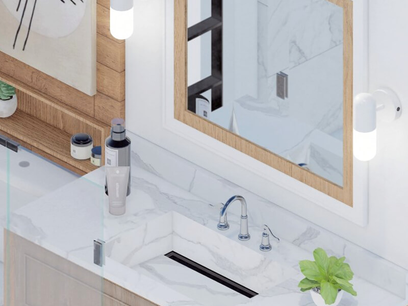 Bathrooms today are more than just a place to do your business. They are beautiful, serene retreats that can help you decompress from your daily routine. A space where you can be at peace is essential to your well-being. Your design is a refreshing and modern blend of flexibility, multi-functionality, and style. It features clean lines and layouts with pops of bold colors, as well as geometric patterns, flowing curves, and hard angles, which all add interest without being overpowering. The extra space in the bathroom has allowed us to create luxurious, custom-made vanities, storage towers, and mirrors that also double as artwork. If you are looking for a bathroom with a modern design, you have come to the right place!