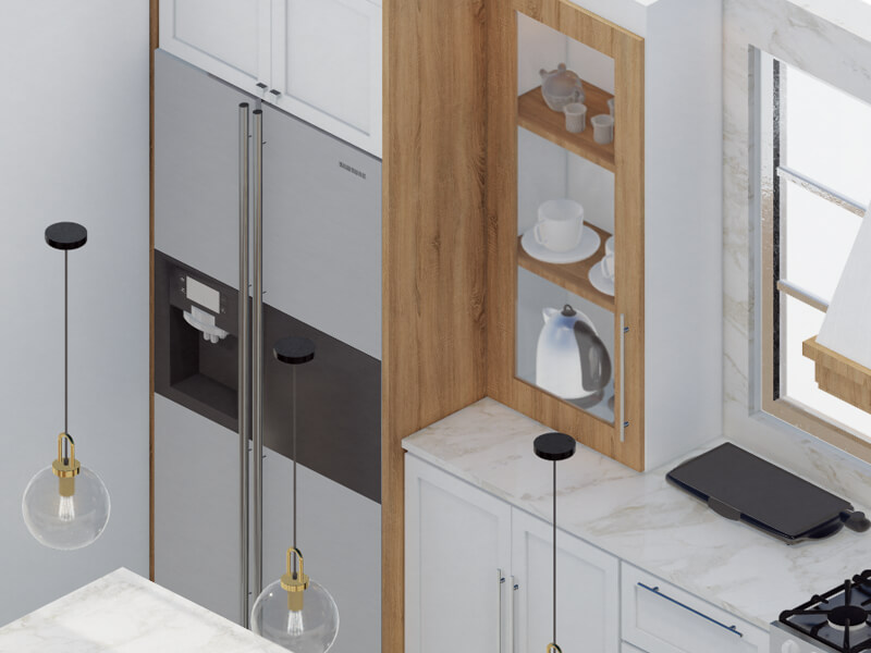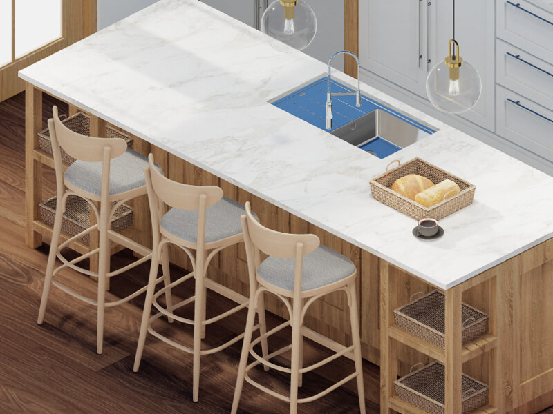 The Ceramic Island’s neutral color palette complements various kitchen decor styles, allowing it to seamlessly blend into your farmhouse-themed kitchen. Its spacious surface offers ample room for meal prep, while the additional storage options, such as drawers and shelves, provide convenient space for organizing kitchen essentials.