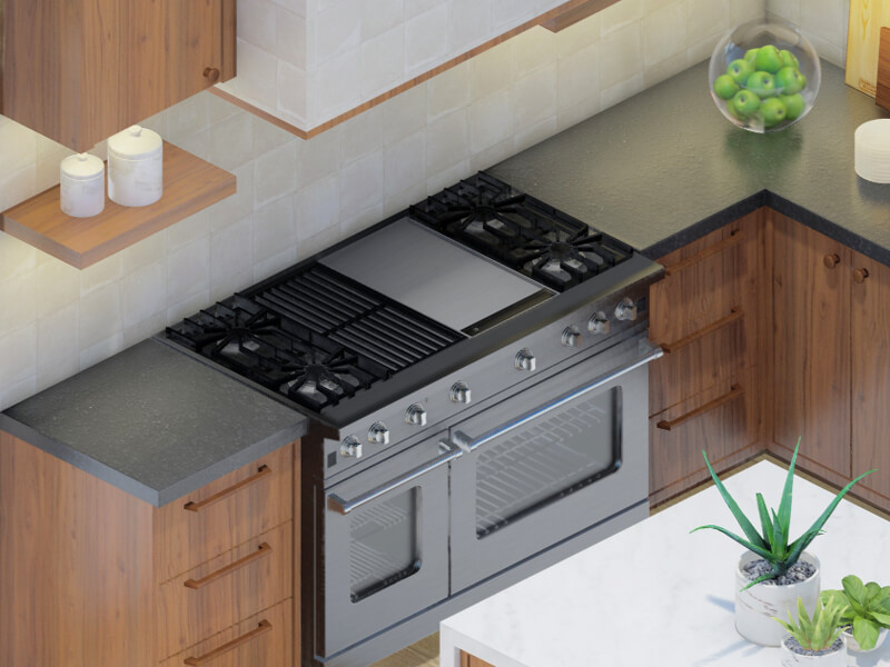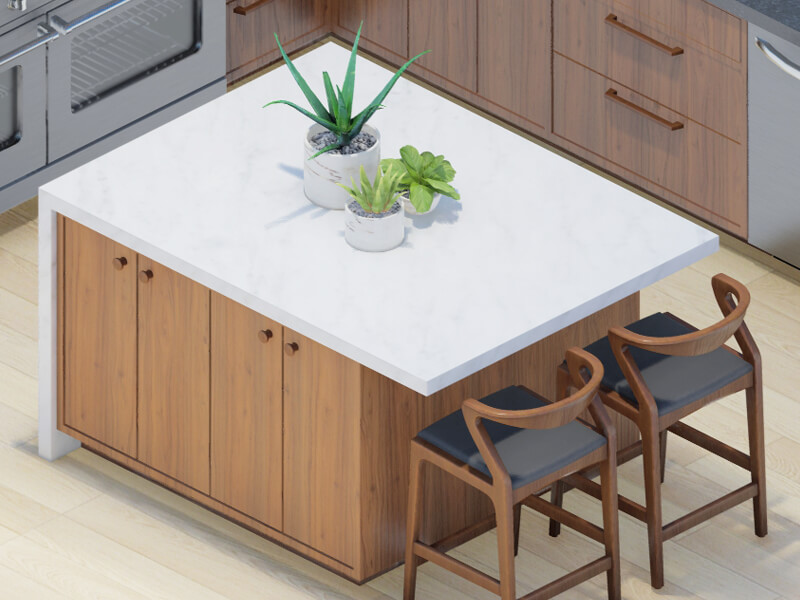To unify the room’s style, this island matches the cabinetry, worktops, backsplash, and flooring, in its perfect way. Because of the wide variety of tile looks available, this ceramic kitchen island pulls all the elements of your kitchen together without compromising on style. It is the perfect way to upgrade your kitchen in both style and durability.