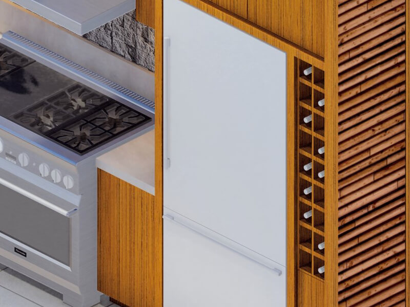 Wood paneling and wooden cabinetry create a cozy, homely feel, which makes the niche particularly attractive. It is a classic choice that will go with any scheme of contemporary designs.