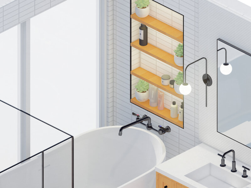 The Scandinavian approach to bathroom design is all about creating a space that is comfortable and relaxing. This typically includes features such as a sauna, shower, or jacuzzi. The bathroom is designed to be simple and uncluttered, with an effective use of colors. The use of light and natural light is key in creating a calming atmosphere. This design is achieved by blending natural wood with subdued colors. The incorporation of simple yet stylish architectural elements pulls the look together. Looking for a way to add a touch of Scandinavian style to your home? Check out our Tiny Rooms - Scandinavian Bathroom collection! With a variety of colors and styles to choose from, you're sure to find the perfect fit for your space.
