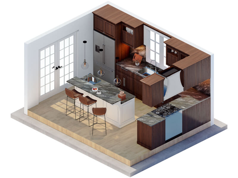 If you're searching for a kitchen design that feels warm and inviting, you'll love traditional kitchen design. This style uses a calming color palette, with whites, grays, and blacks. The use of natural materials such as wood, granite, marble, and tile really defines this design. Together, these elements create a bright, airy space. This kitchen has a luxurious rustic appeal with materials like stone countertops and exposed brick. Traditional style meets comfort and elegance in this inviting and comfortable space. Adding pops of color can also help to give your traditional kitchen design some extra personality.