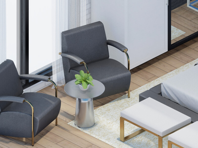 The streamlined aesthetics and lack of color create a feeling of comfort and welcome.