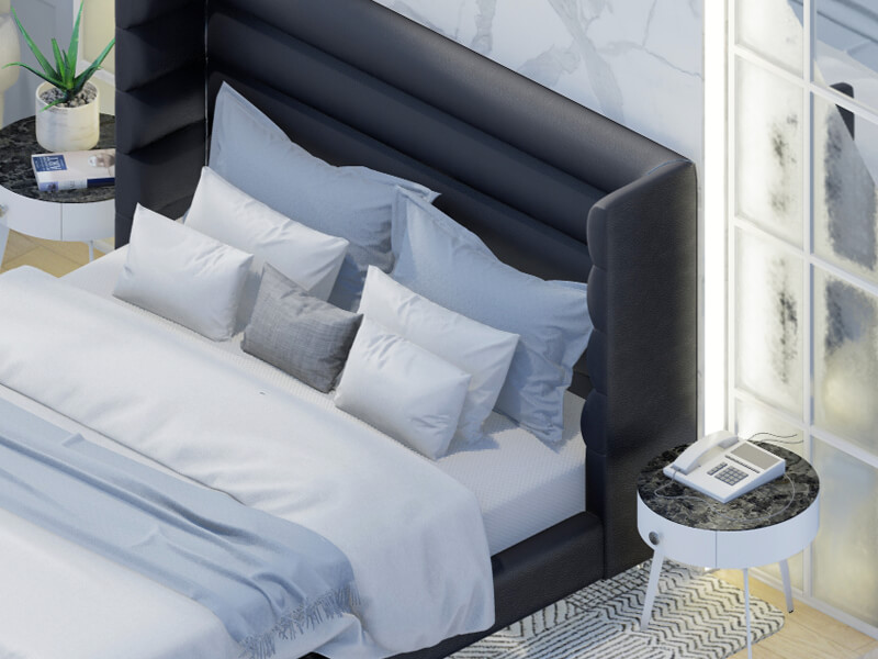The transitional style can help you create a bedroom that is modern and simplified. It is a style that takes inspiration from both traditional and contemporary styles to produce a look that is neither too ornate nor too simplistic. Your design scheme will incorporate warm colors and earth tones, such as browns, whites, and creams, to create a relaxed, airy ambiance with a touch of elegance. This space will feature simple and understated furniture. It has a style on its own, with tall, masculine headboards and pieces with clean lines and neutral colors carefully combined. Everything works together perfectly according to your taste.